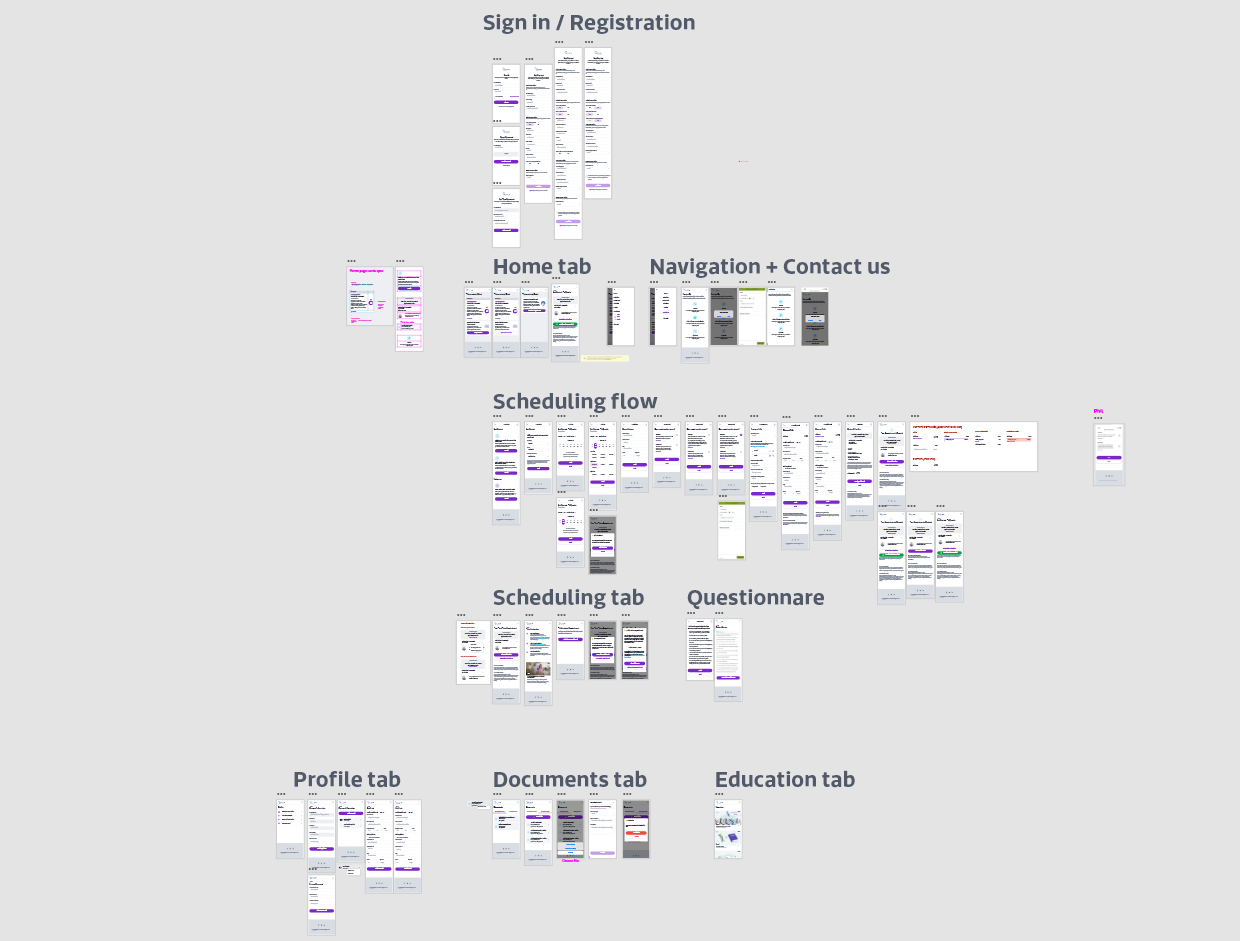 I started this project by getting familiar with the portal, I had meetings with the design and clinical teams to learn about the portal history and its design decisions. Then I explored the portal experience myself and conducted a detailed heuristic evaluation. This helped me map out the existing usability issues within the user flow.