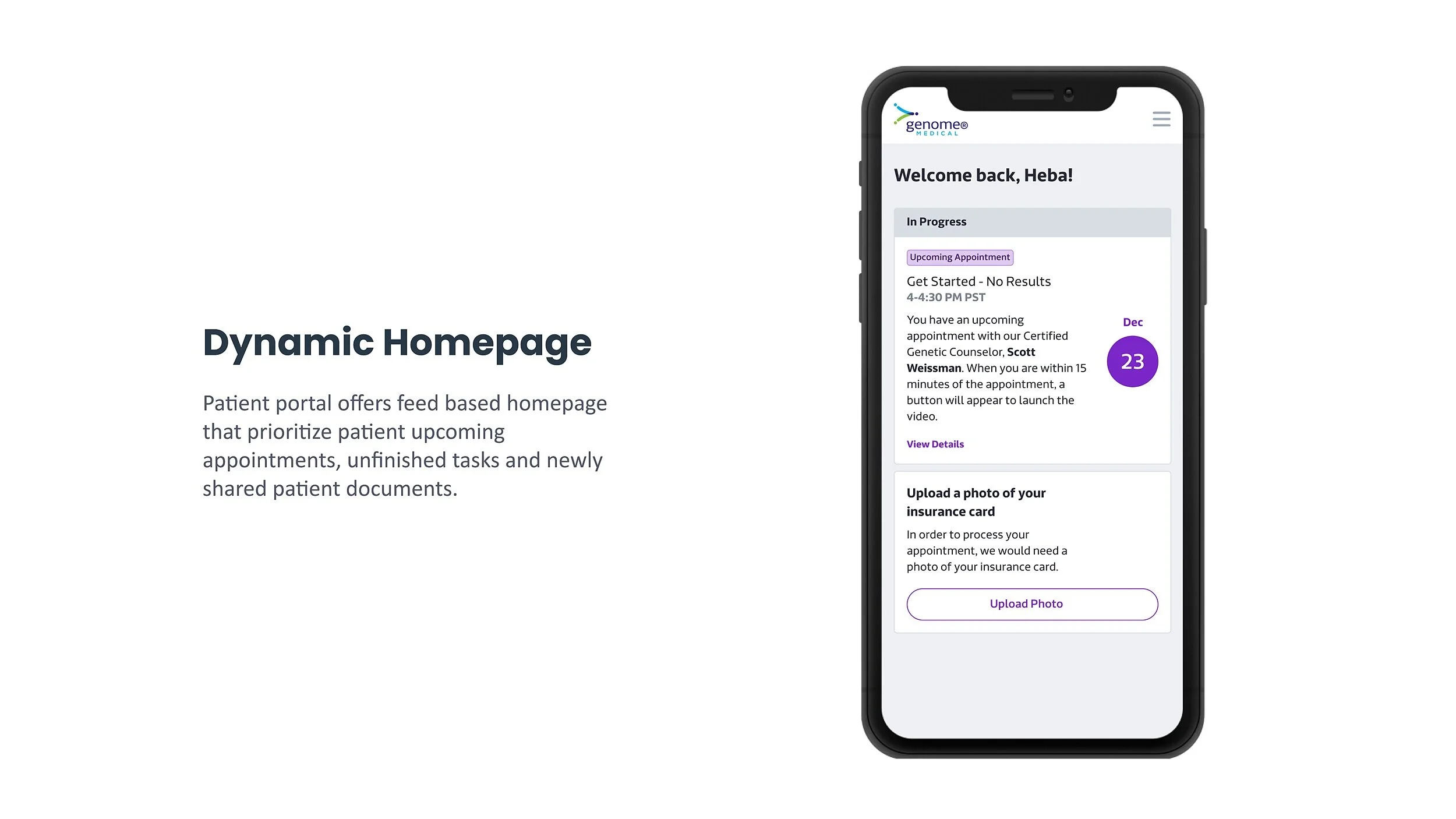 The patient portal is a web experience that lets users access Genome Medical genetic counseling services. My goal was to create a mobile experience that is consistent with our desktop version.